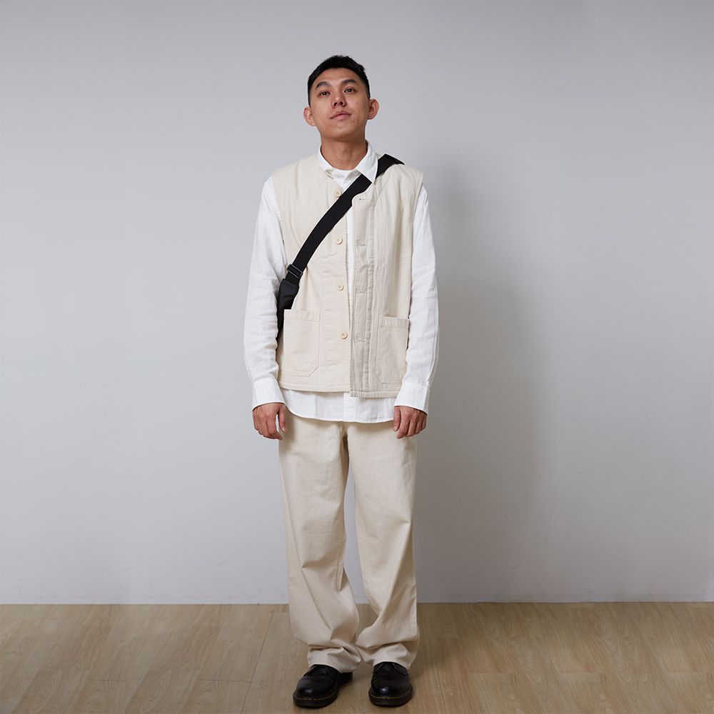 男吉貝木棉混人字紋鋪棉背心/原色 L